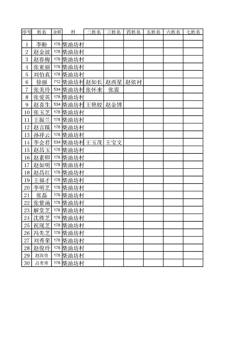 2021年10月份低保人员名单 柴油坊