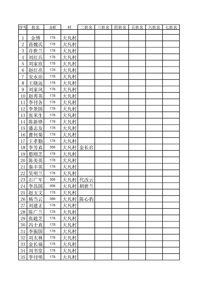 2021年10月份低保人员名单 大凡村