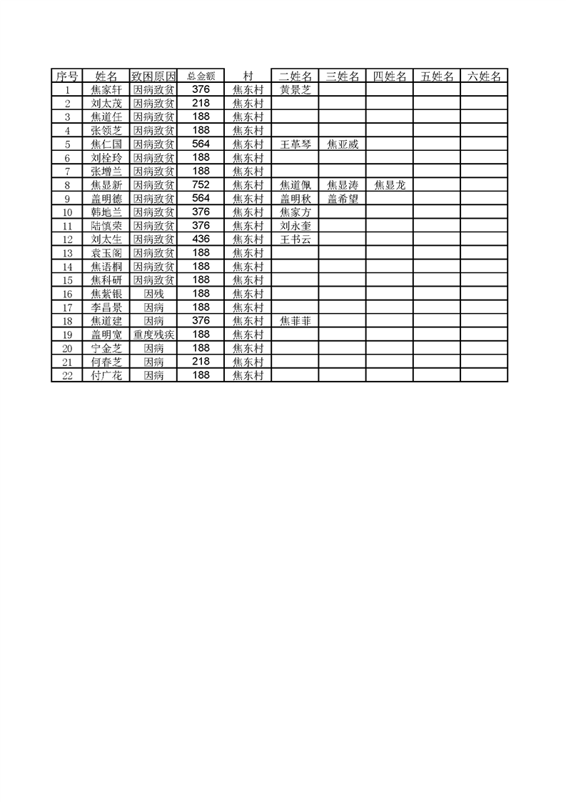 王桥镇11月份农村低保 焦东村