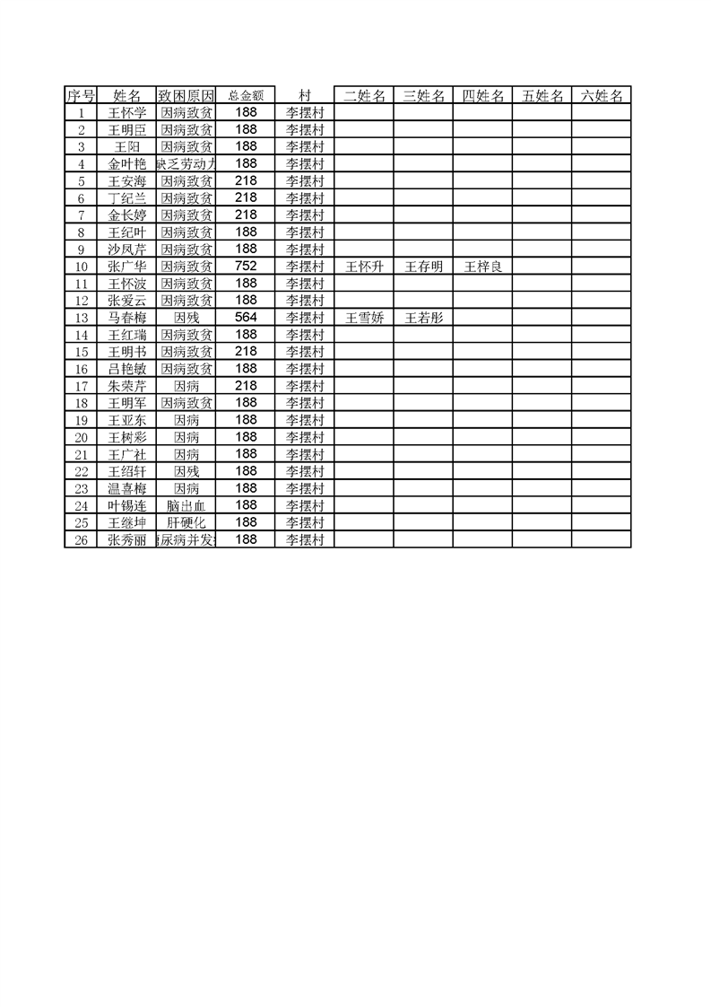 王桥镇11月份农村低保 李摆村