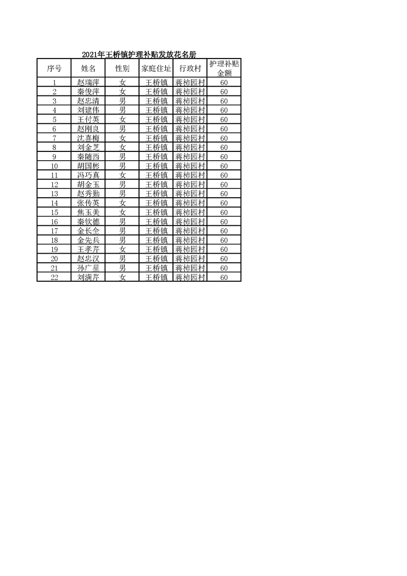 21年11月护理补贴 蒋柿园