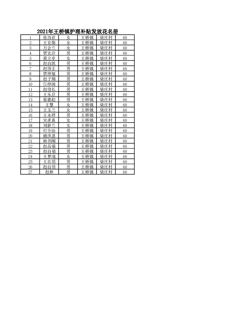 21年11月护理补贴 柴庄村