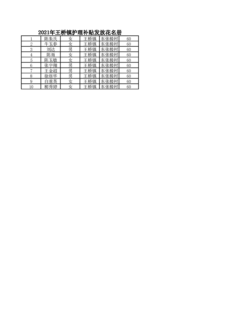 21年11月护理补贴 东张楼