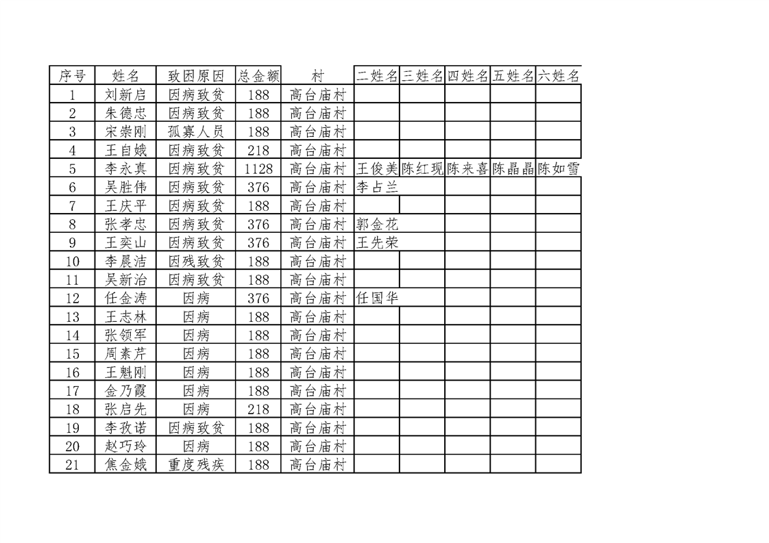 2021年12月份农村低保 高台庙