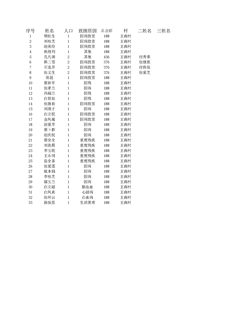 2022年1月王桥镇低保人员名单 王南