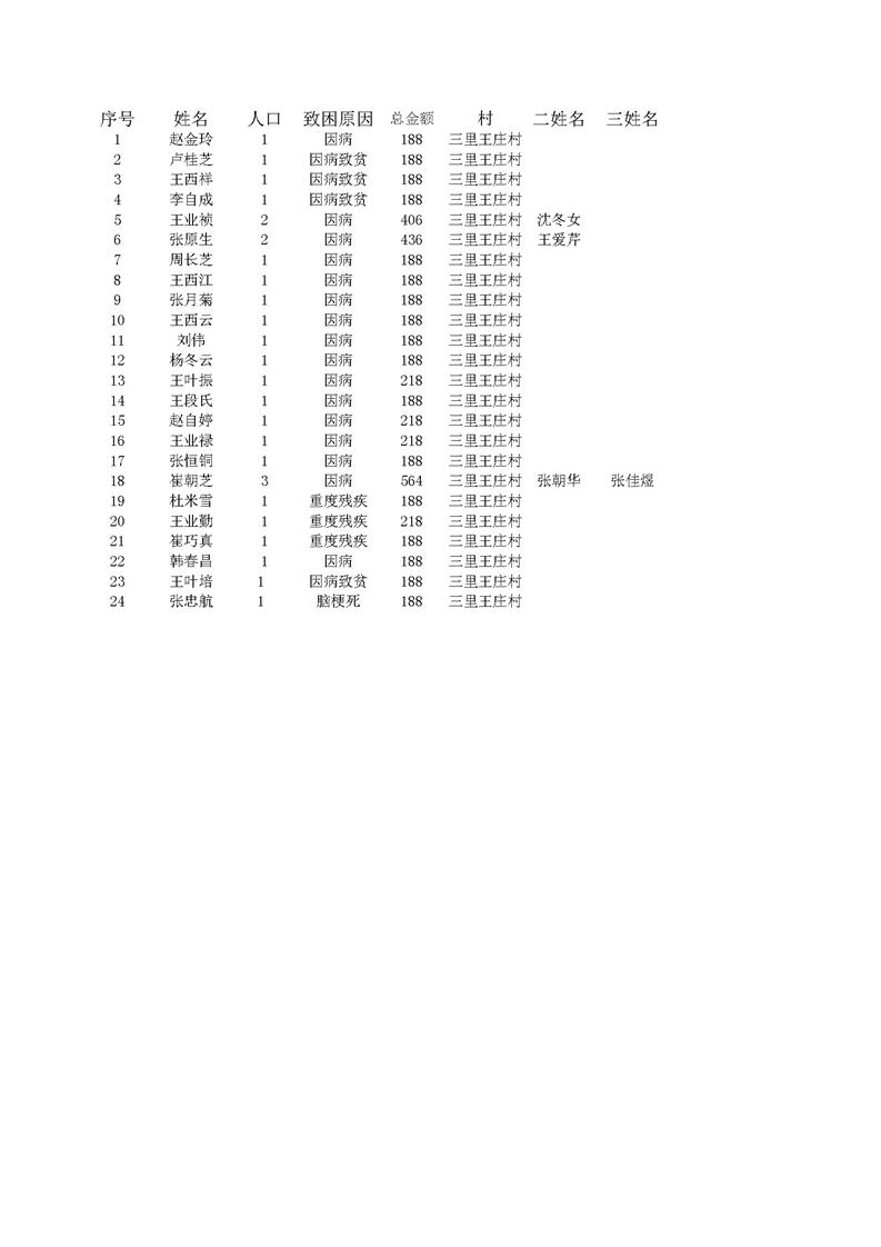 2022年1月王桥镇低保人员名单 三里王庄村