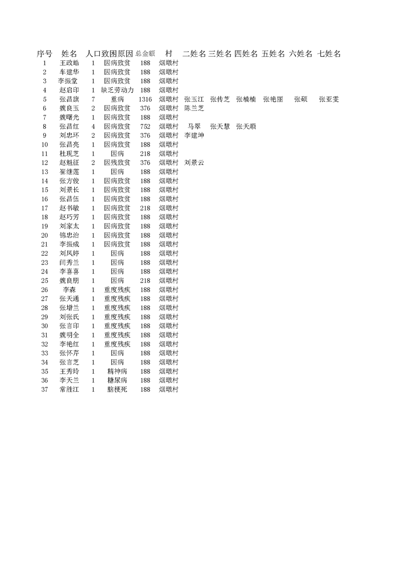 2022年1月王桥镇低保人员名单 烟墩村