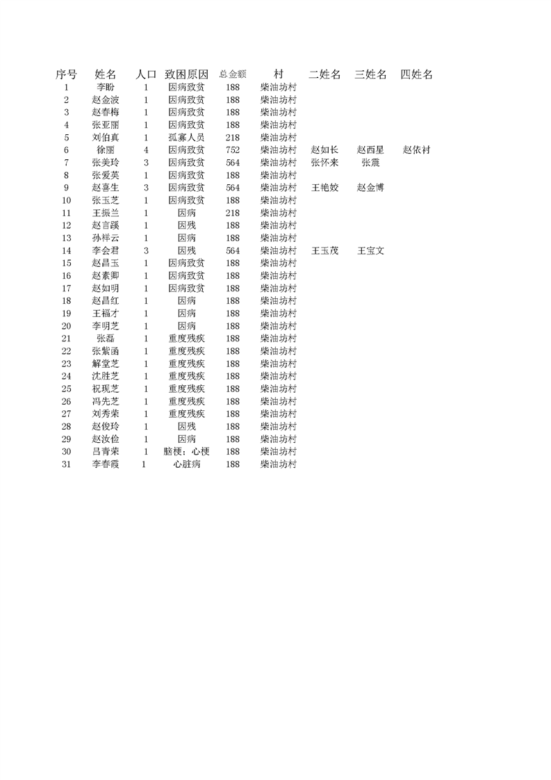 2022年1月王桥镇低保人员名单 柴庄村