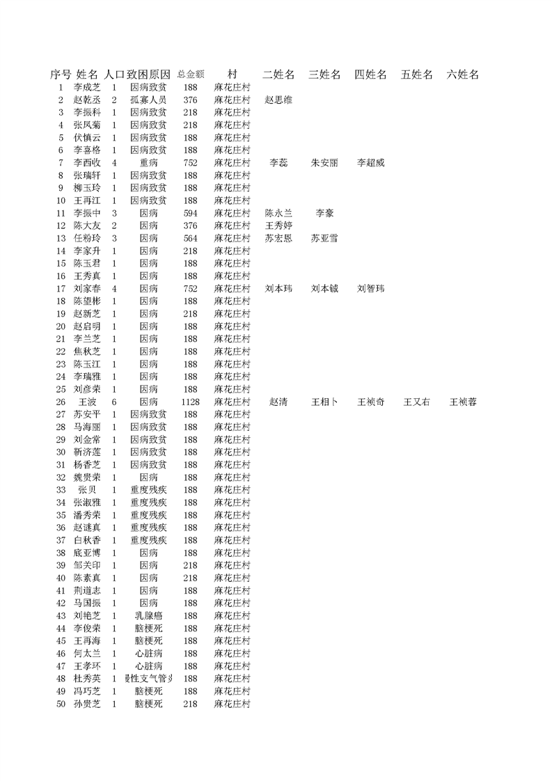 2022年1月王桥镇低保人员名单 麻花庄