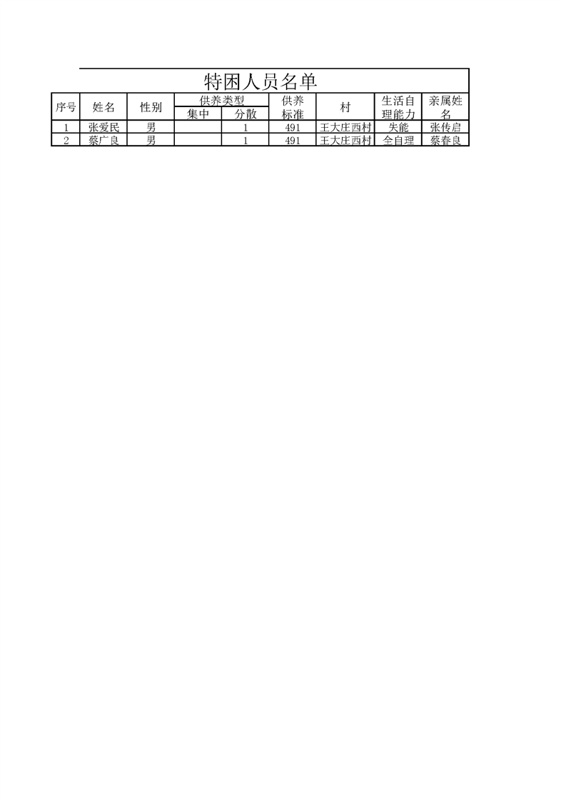 2022年1月王桥镇特困人员名单 王大庄西村