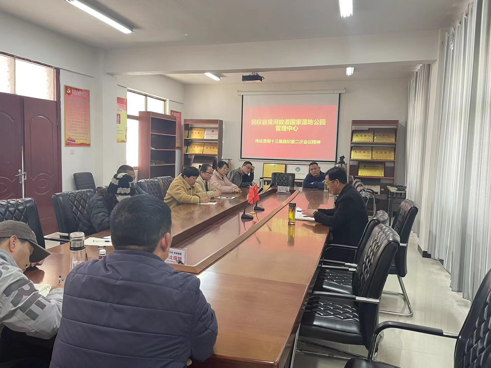 2022年3月1日下午,县湿地公园管理中心在三楼会议室传达了十三届县纪委二次全会会议精神,党支部书记李杰主任主持了此次会议,湿地公园全体干部职工参加了此次会议。会上,李杰首先传达贯彻了县委书记张团结第一次大会上的重要讲话和县纪委书记冉燃在中共民权县第十三届纪律检查委员会第二次全体会议《从百年党史汲取智慧力量推动纪检检查工作高质量发展为撤县设市提供坚强保证》的工作报告。党支部书记李杰主任指出2021年我们在市纪委和县委的正确领导下,在县纪委监察机关的监督下,县湿地公园管理中心牢记习近平总书记的“奋勇争先、更加出彩”的殷殷嘱托,突出把高质量发展作为价值理念、目标指向、衡量标准、促进正风肃纪反腐更加精准、更加科学、更加有效,充分发挥了监督保障执行、促进完善发展作用,县湿地公园管理工作在高质量发展上迈出新步伐,打造了风清气正的政治生态。