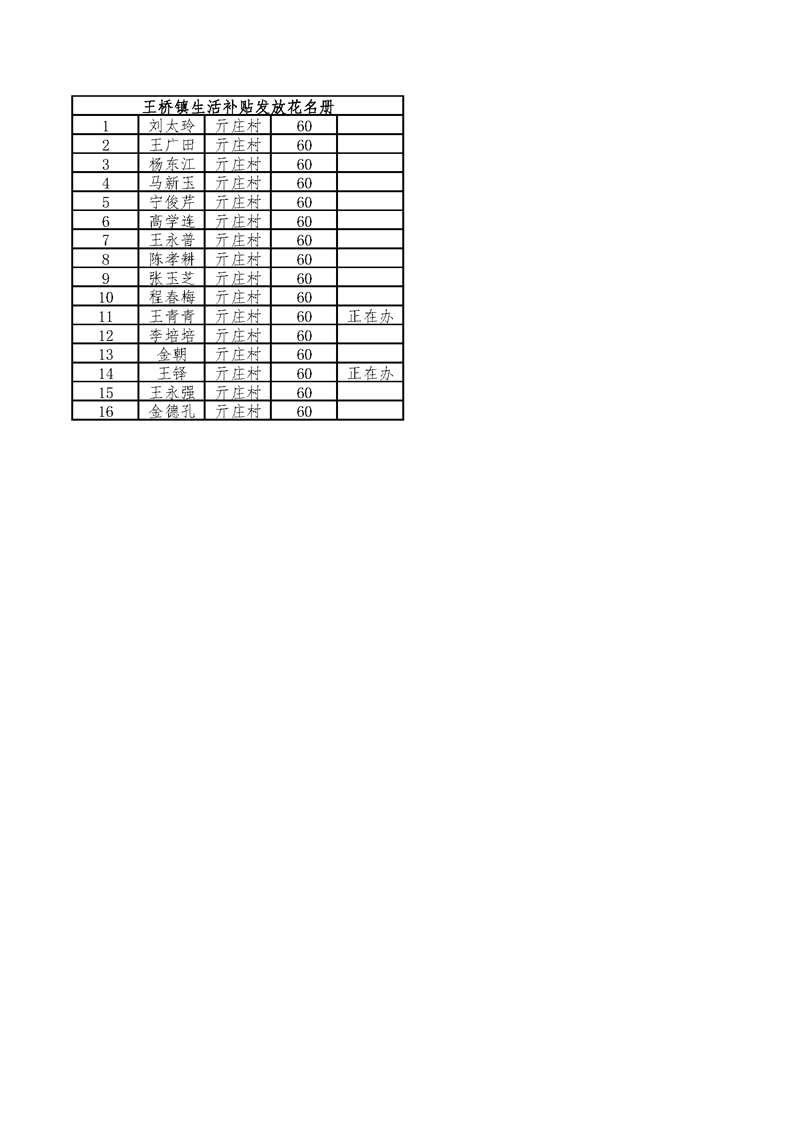 2022年3月王桥镇生活补助发放名单 亓庄村
