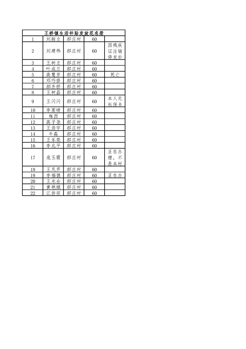 2022年3月王桥镇生活补助发放名单 郝庄村