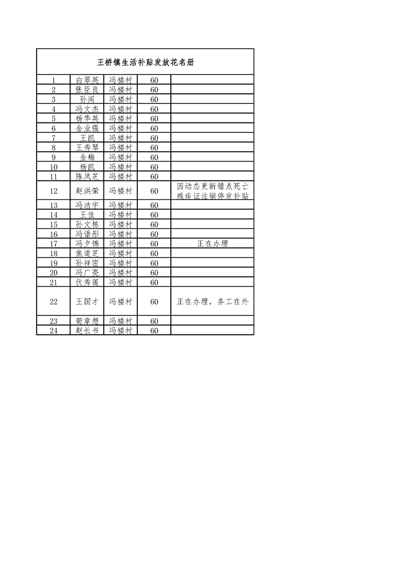 2022年3月王桥镇生活补助发放名单 冯楼村