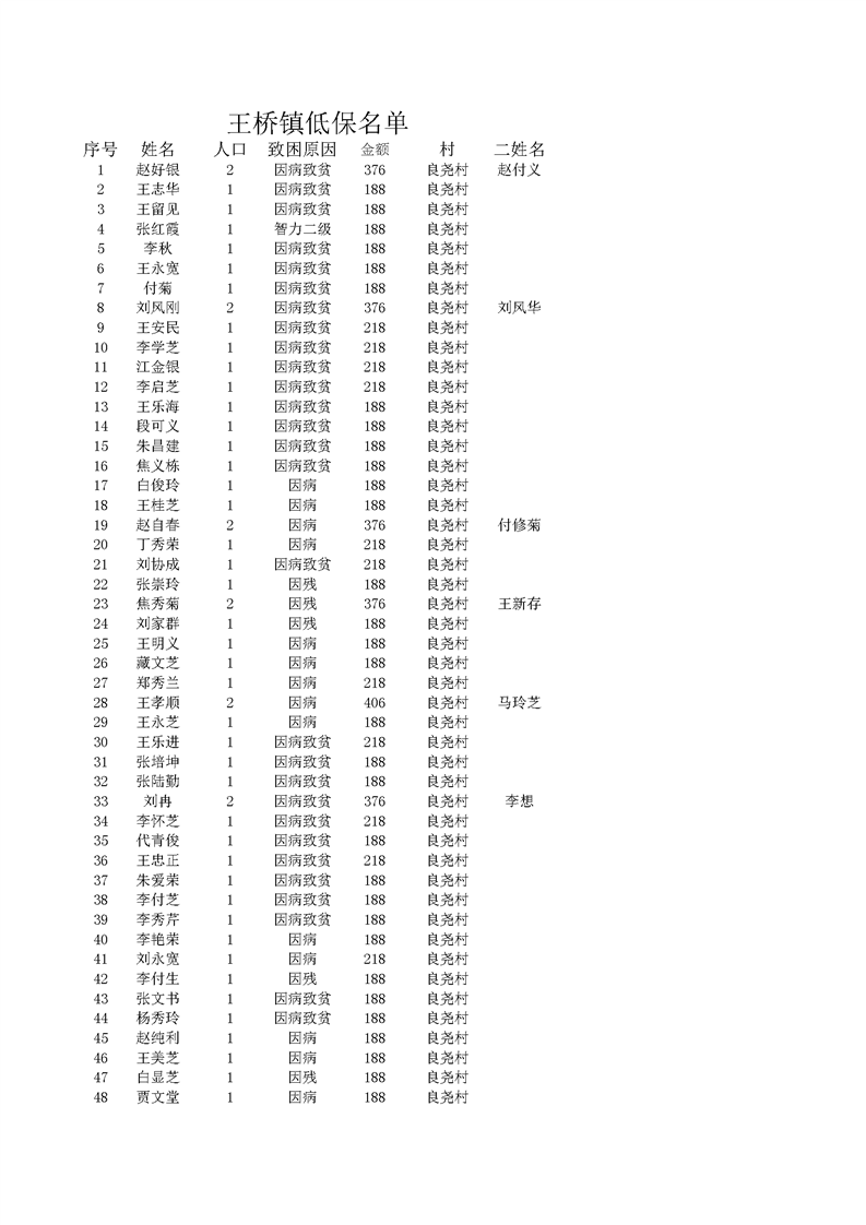 2022年3月王桥镇低保发放名单 良尧村