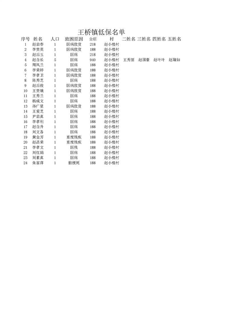 2022年3月王桥镇低保发放名单 赵小楼