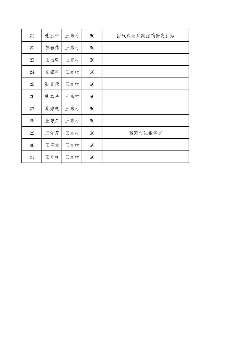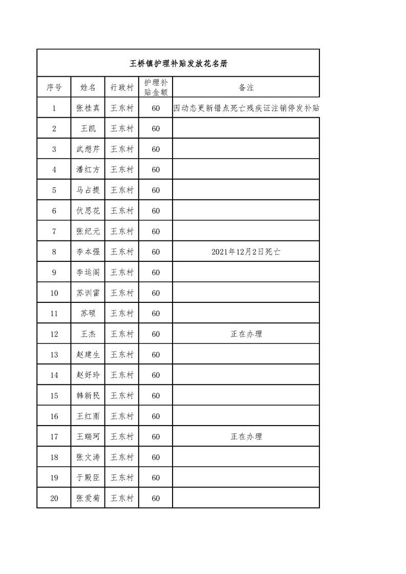 2022年4月王桥镇护理补贴 王东村