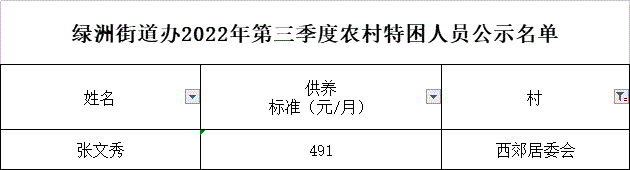绿洲街道办2022年第三季度农村特困人员公示名单