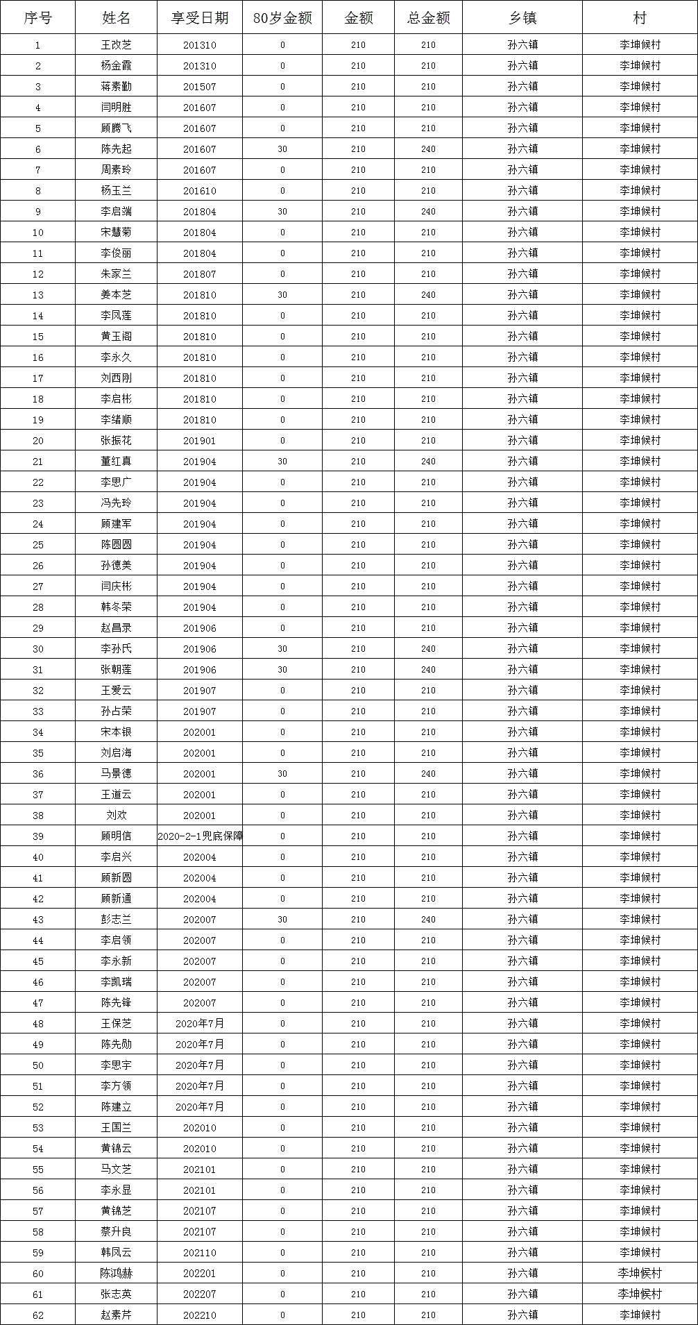 李坤候村2022年12月份低保人员名单