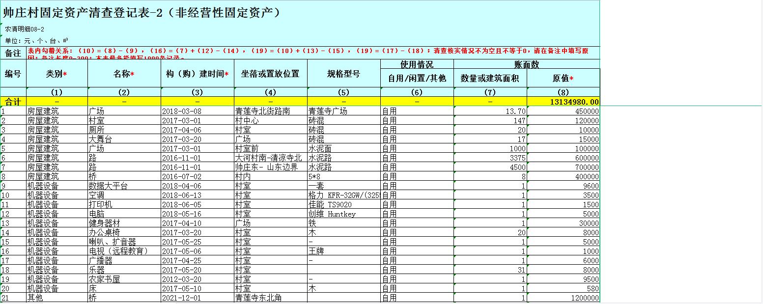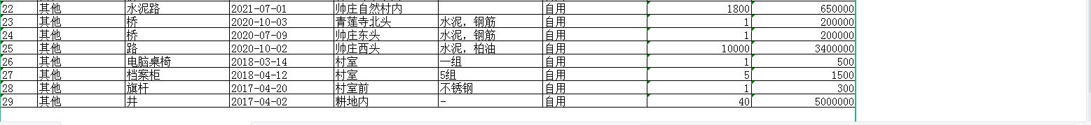 帅庄村固定资产