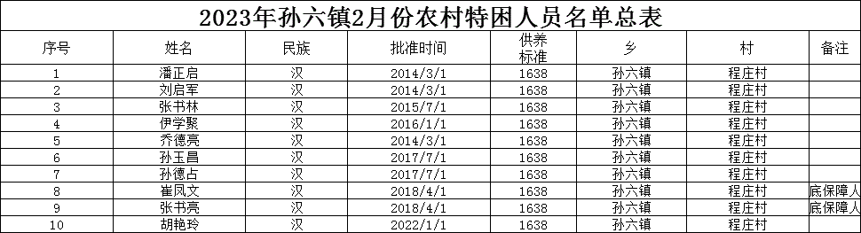 程庄村2023年2月特困人员名单