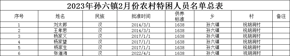 祝胡洞村2023年2月特困人员名单