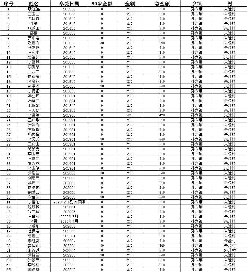 朱洼村3月份低保发放名单