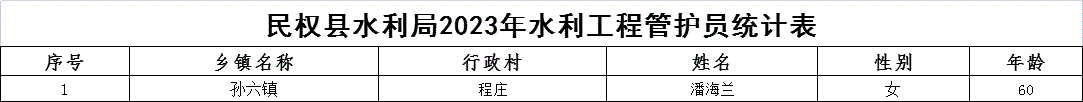 程庄村2023年水利局水利工程管护员统计表