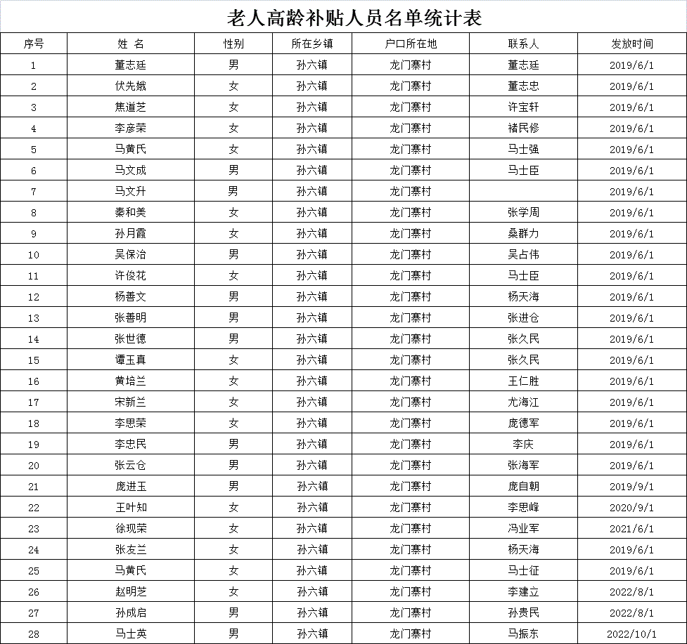 龙门寨村2023年80岁老年人名单