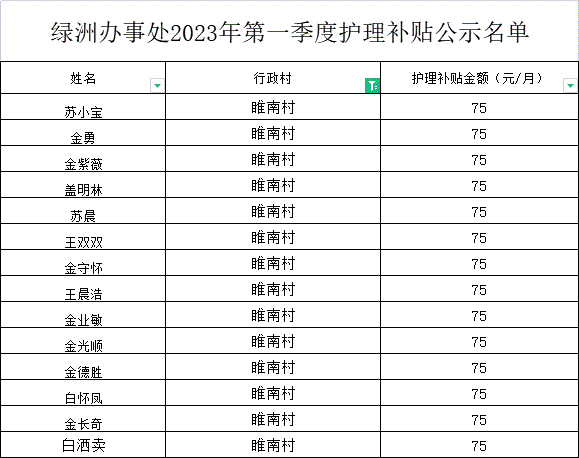 绿洲办事处2023年第一季度护理补贴公示名单