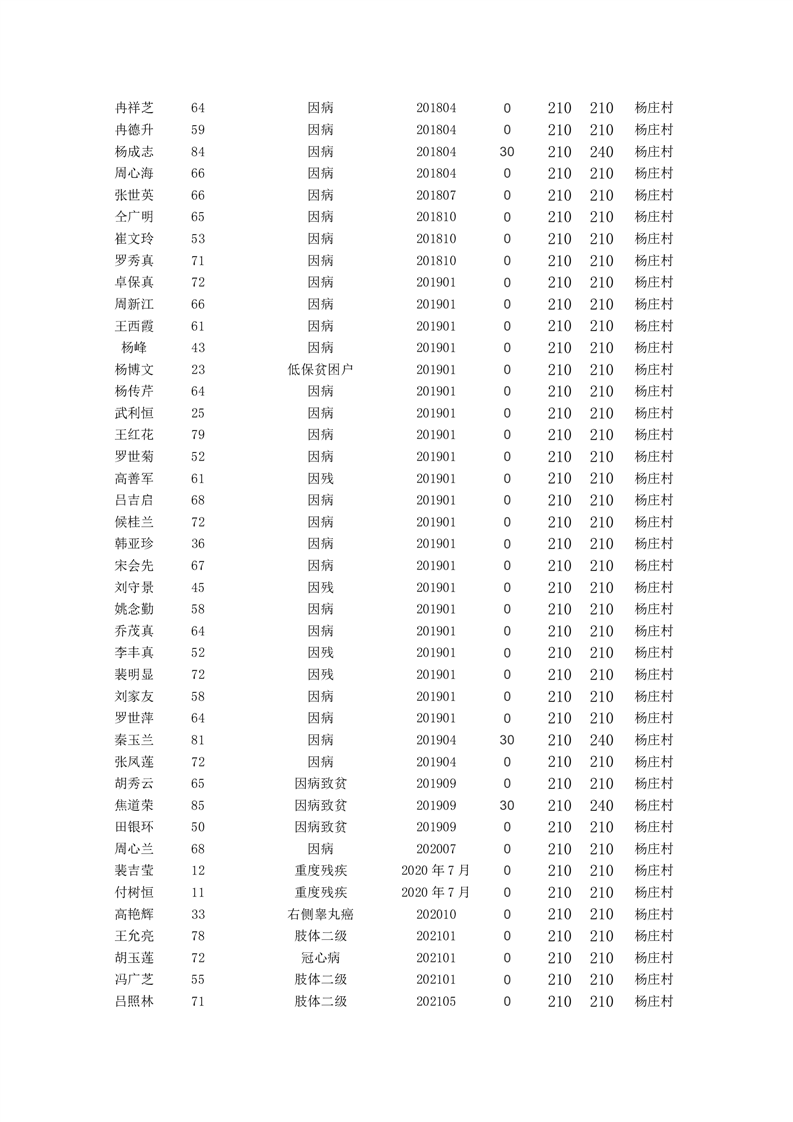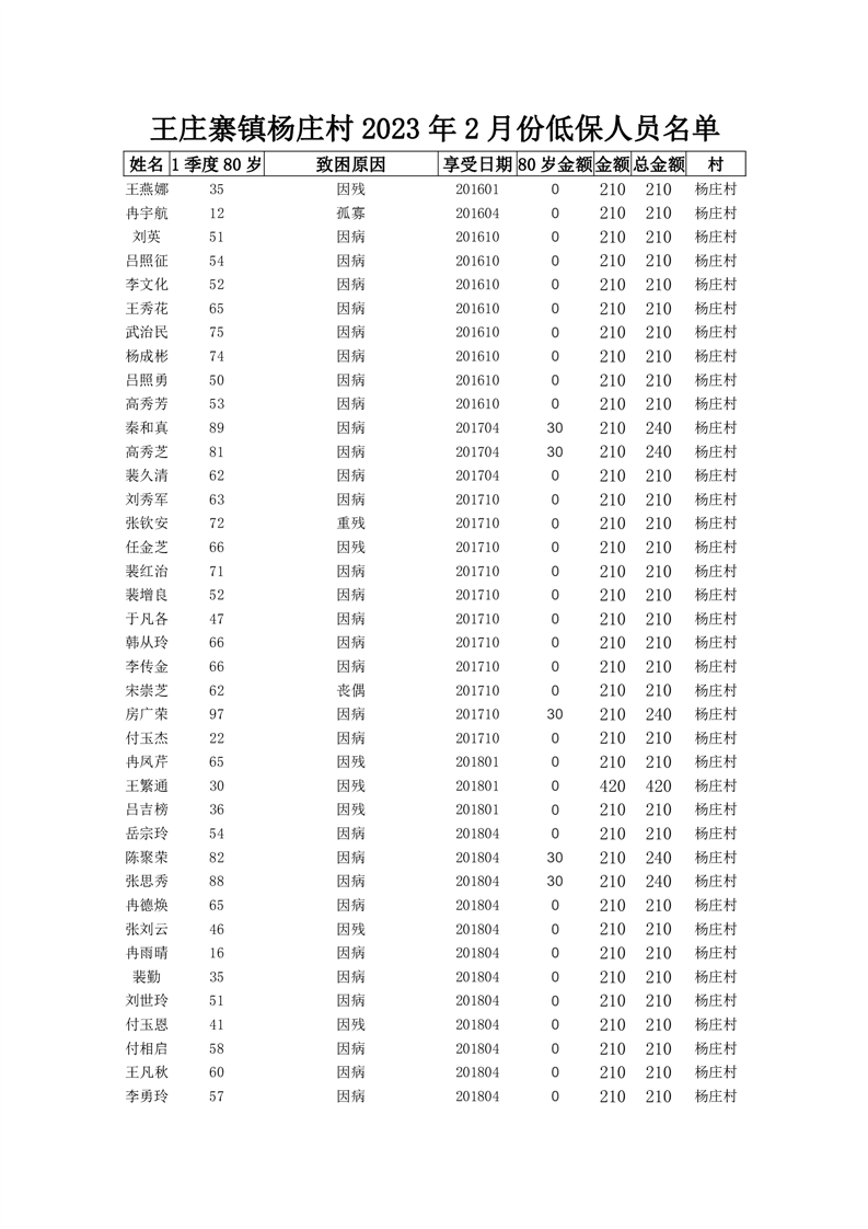 王庄寨镇杨庄村2023年2月份农村低保名单