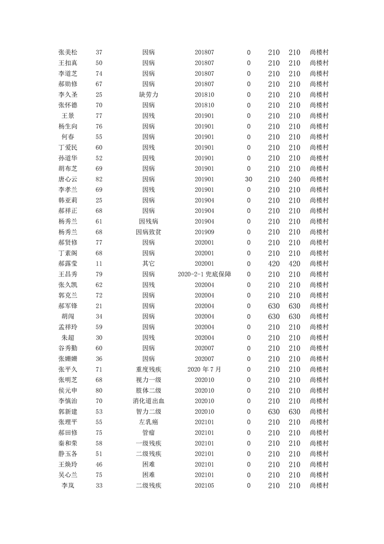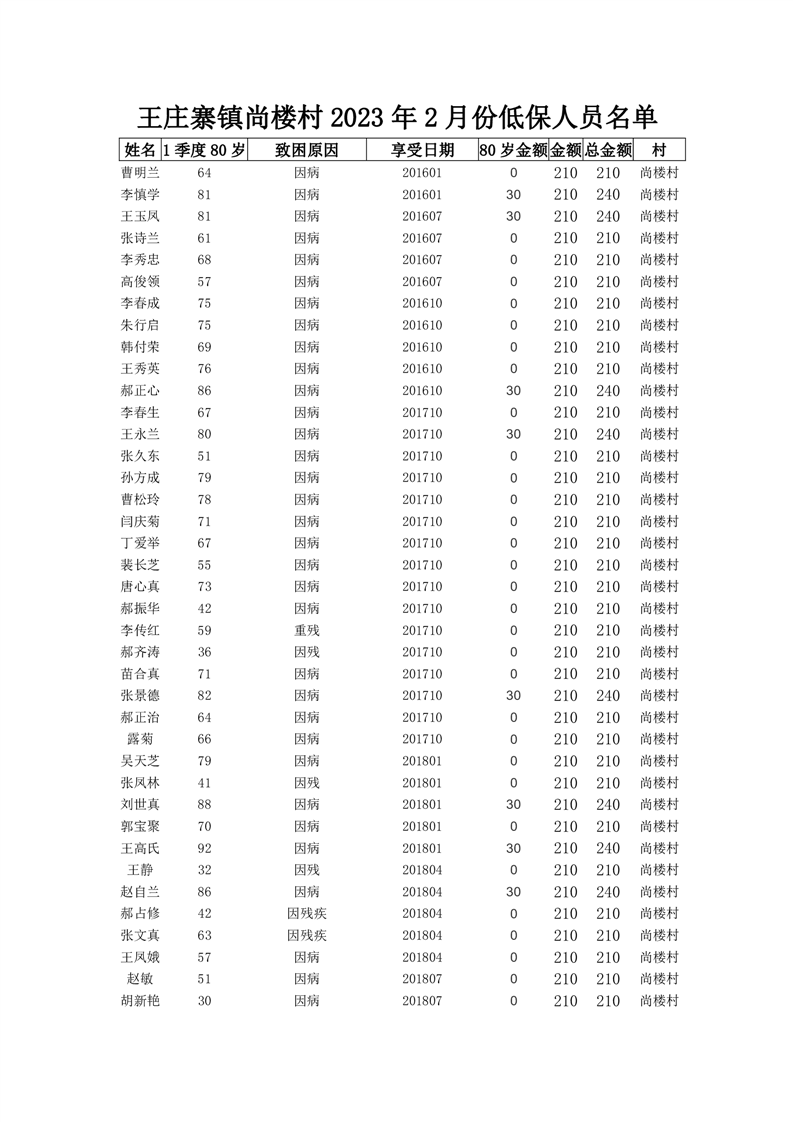 王庄寨镇尚楼村2023年2月份农村低保名单
