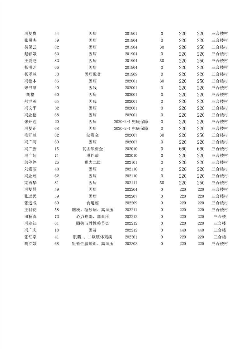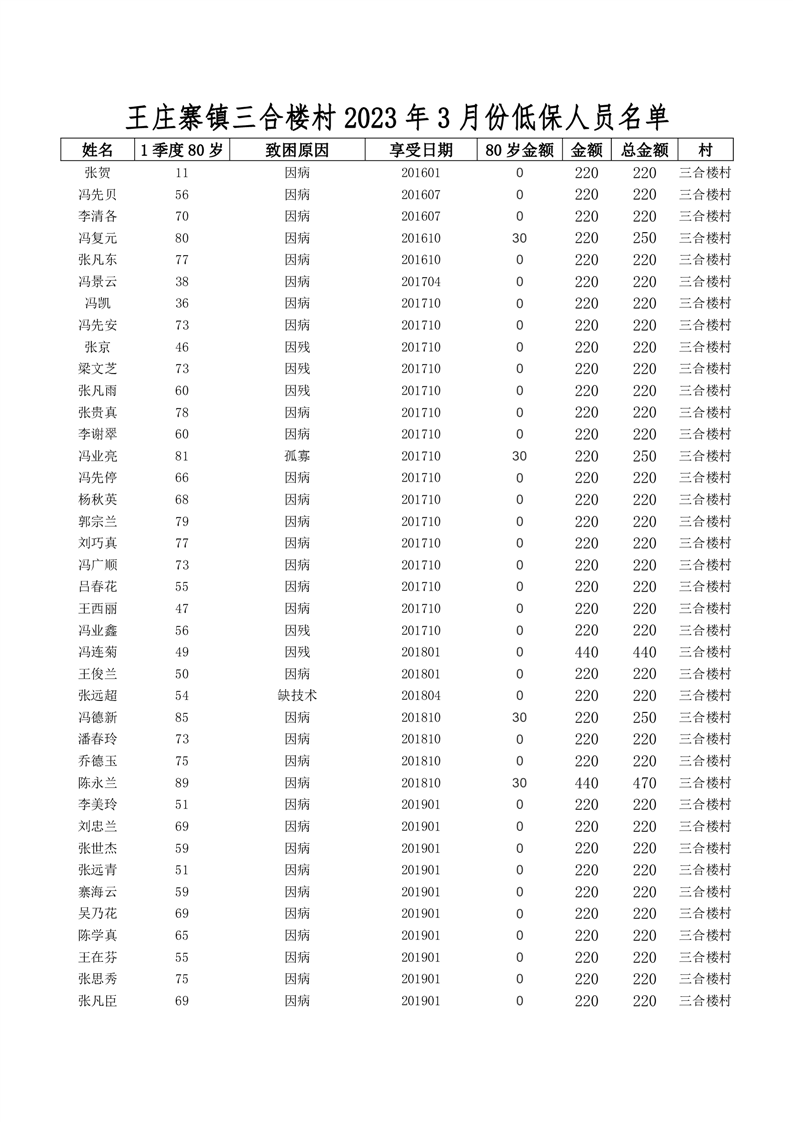 王庄寨镇三合楼村2023年3月份农村低保名单