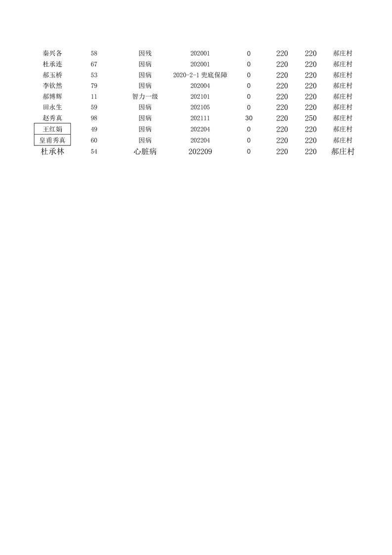 王庄寨镇郝庄村2023年3月份农村低保名单