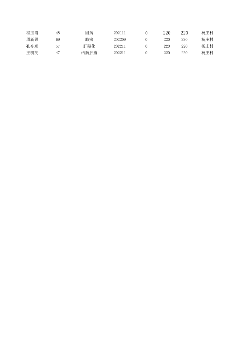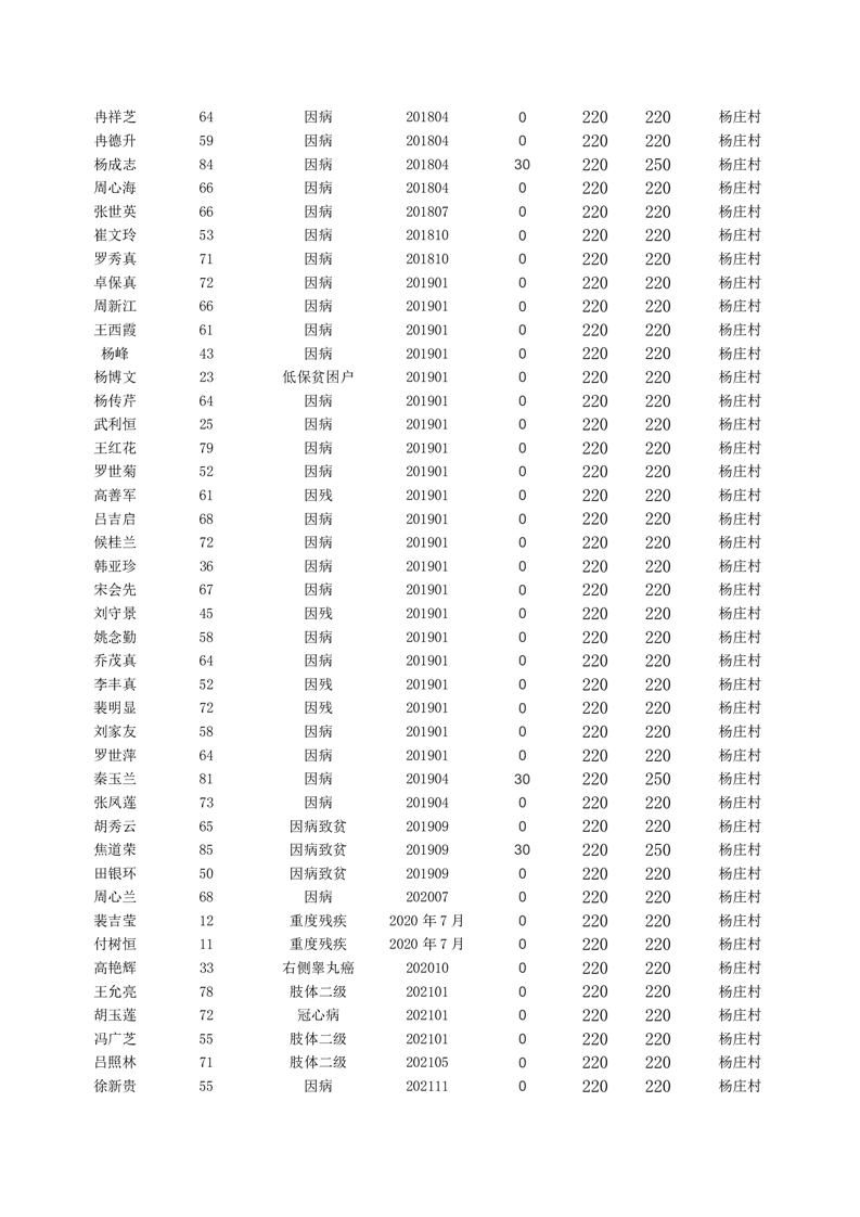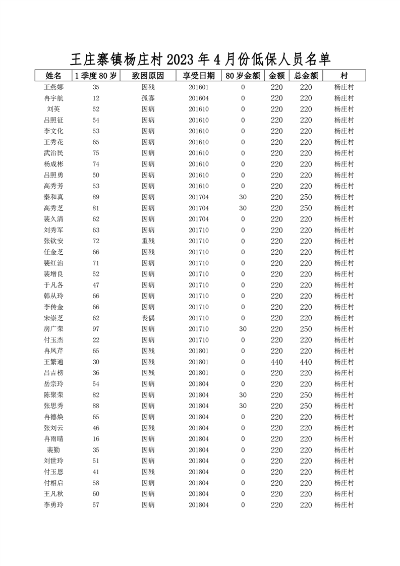 王庄寨镇杨庄村2023年4月份农村低保名单
