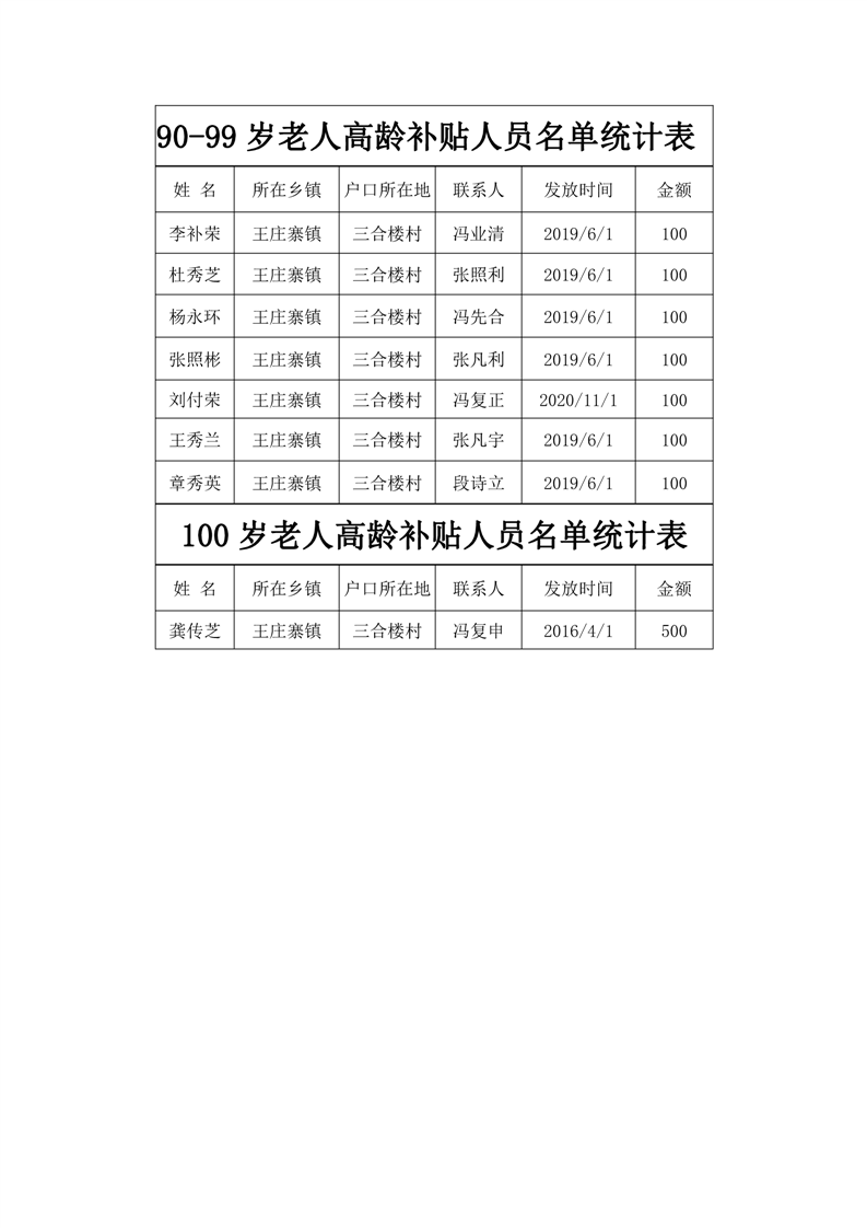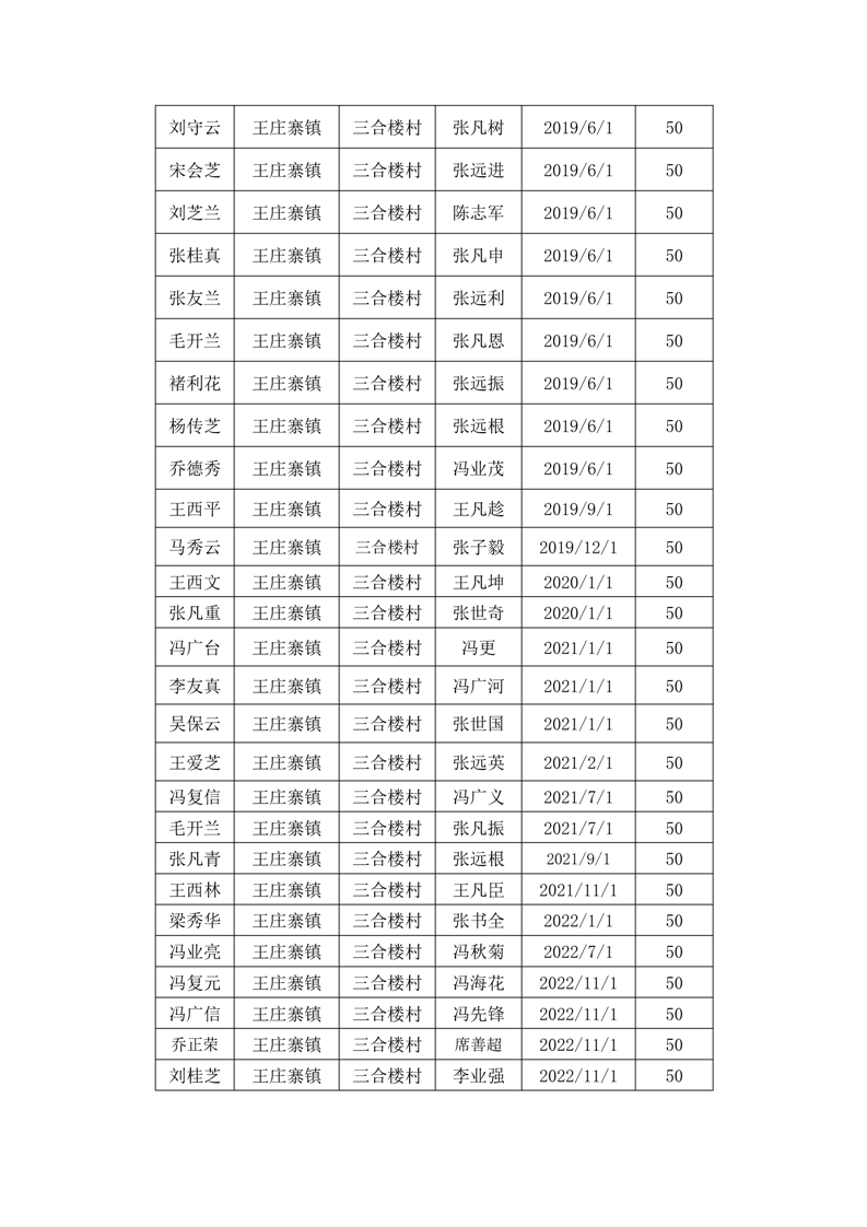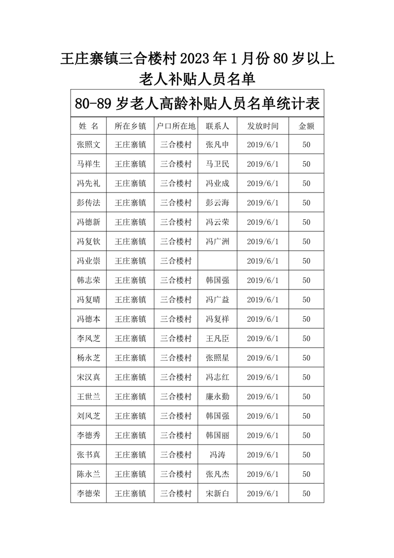 王庄寨镇三合楼村2023年1月份高龄补贴 人员名单统计表
