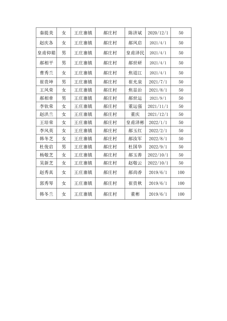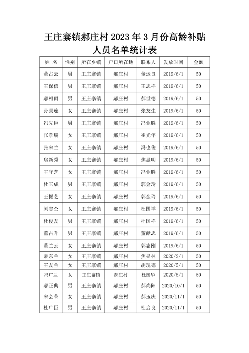王庄寨镇郝庄村2023年3月份高龄补贴 人员名单统计表