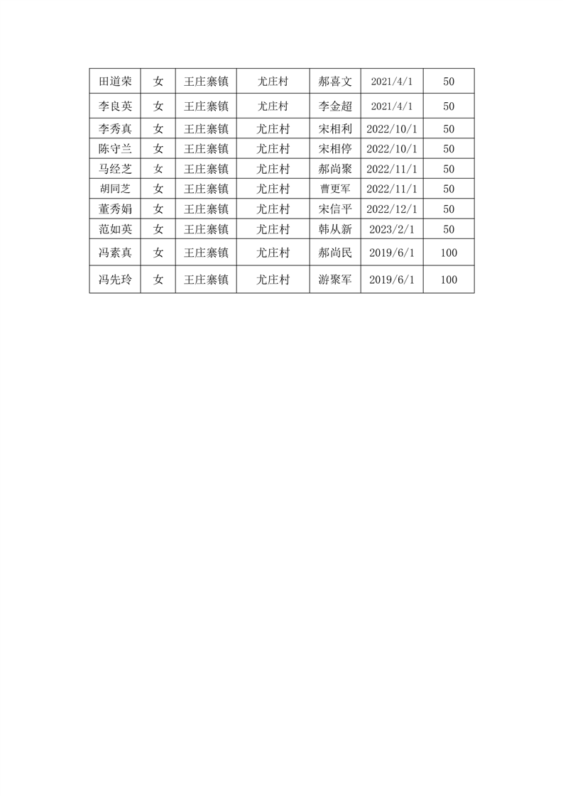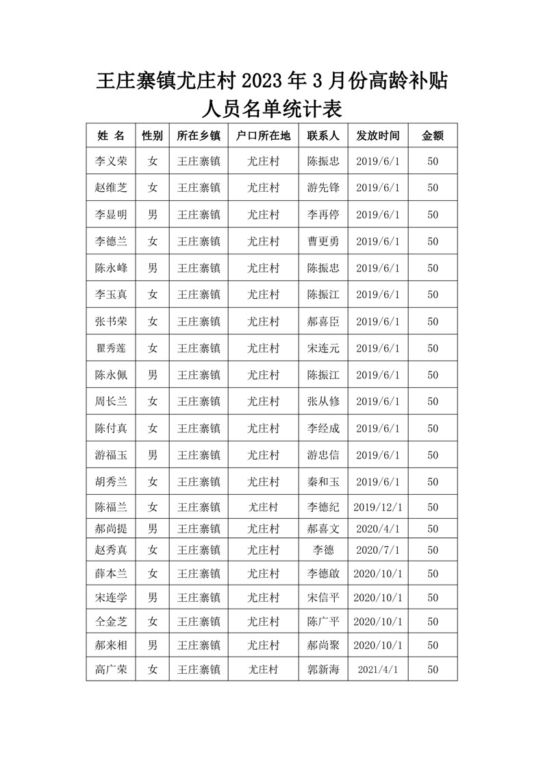 王庄寨镇尤庄村2023年3月份高龄补贴 人员名单统计表