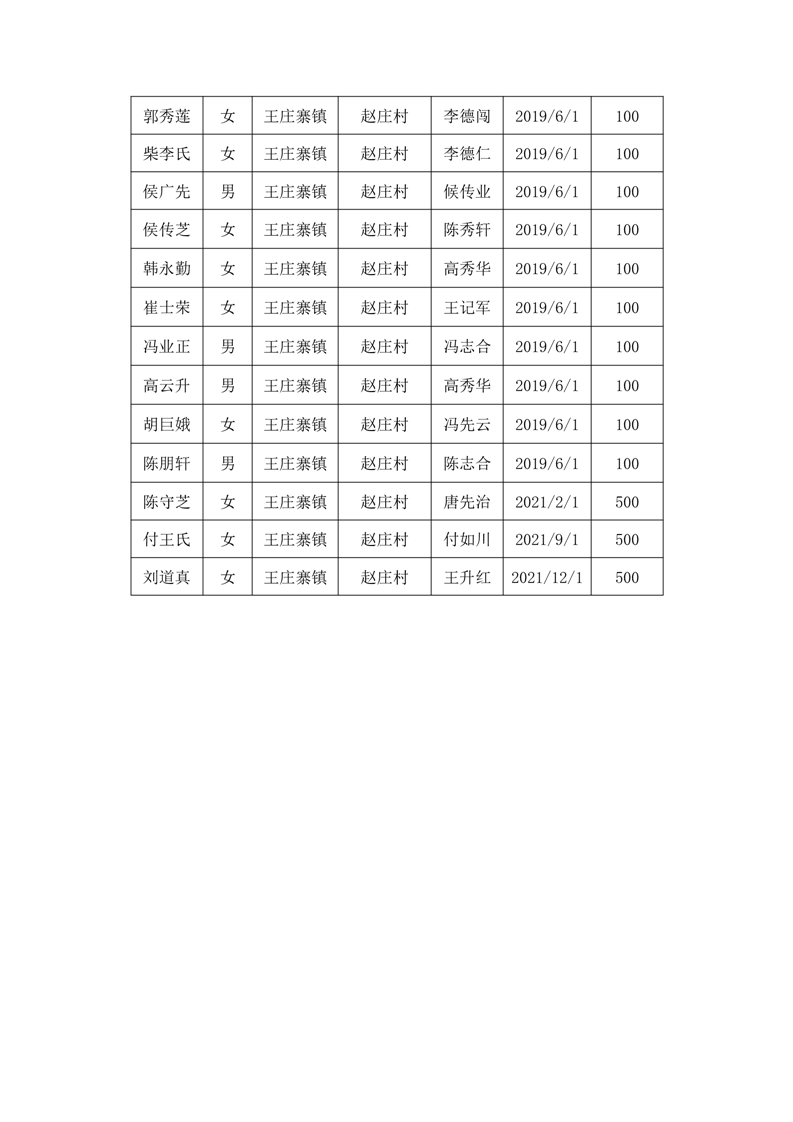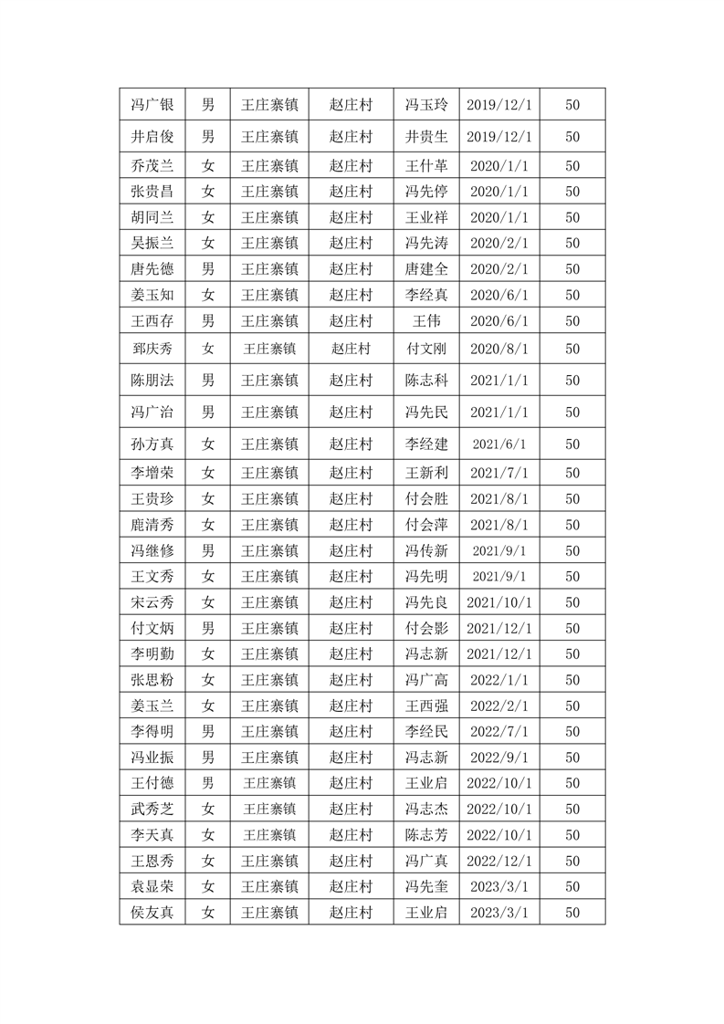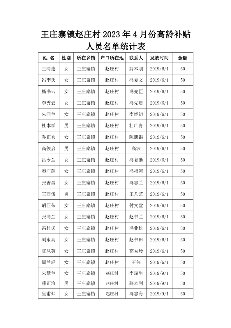 王庄寨镇赵庄村2023年4月份高龄补贴 人员名单统计表