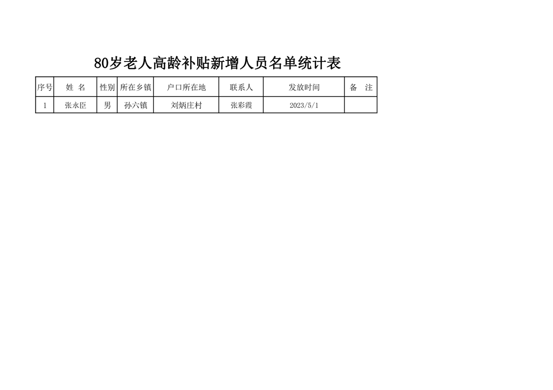 刘炳庄村2023年5月份新增80-89岁老人高龄补贴