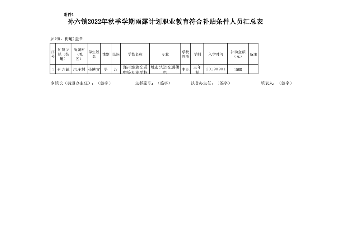 洪庄村2022年秋季学期雨露计划职业教育符合补贴条件人员名单