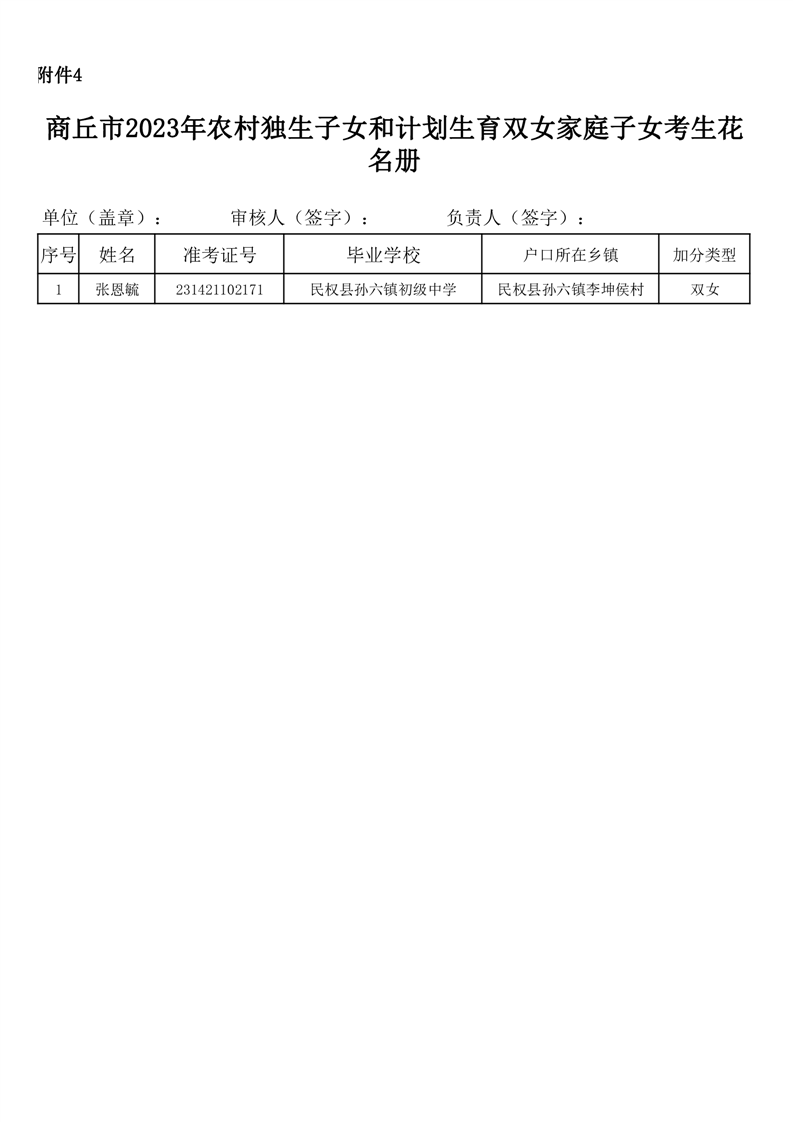 李坤候村2023年农村独生子女和计划生育双女家庭子女考生花名册