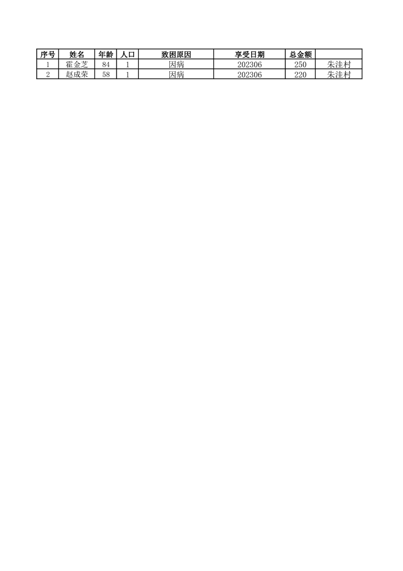 朱洼村2023年6月份新增低保发放名单