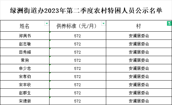 绿洲街道办2023年第二季度农村特困人员公示名单