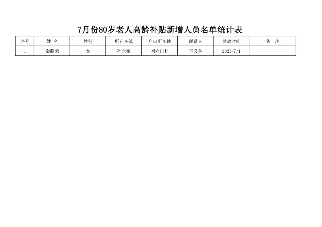 刘六口村2023年7月份新增高龄补贴名单
