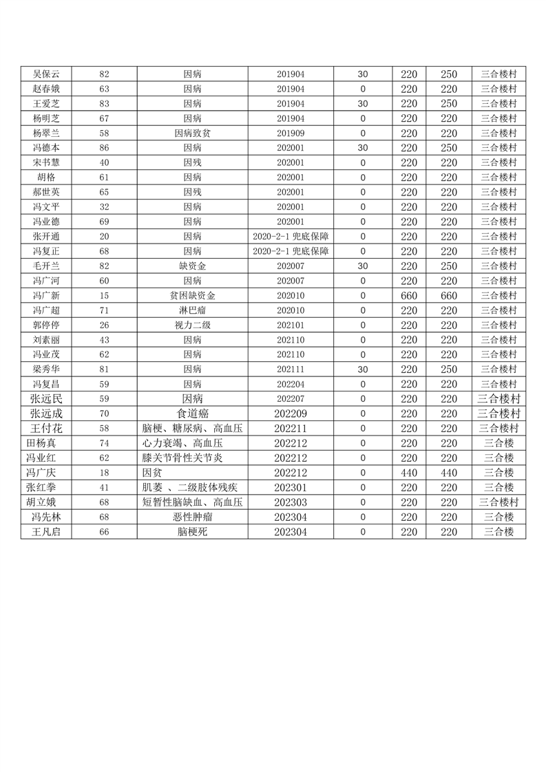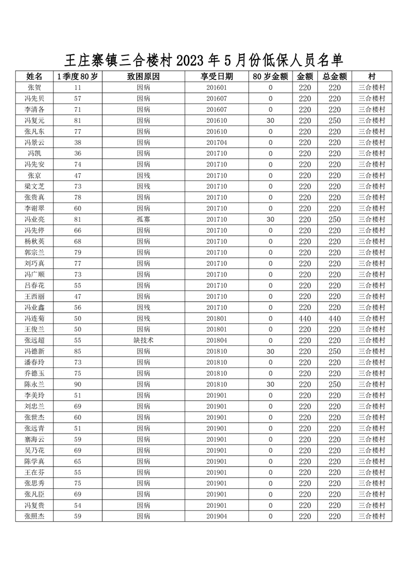 王庄寨镇三合楼村2023年5月份低保人员名单