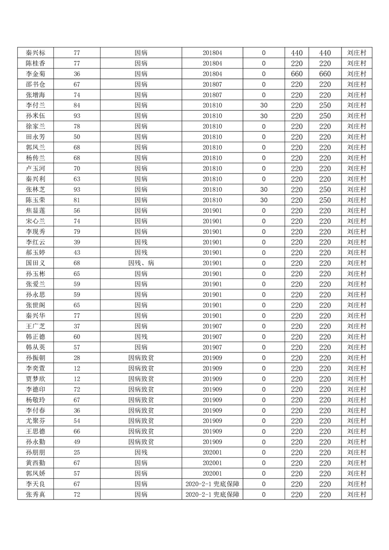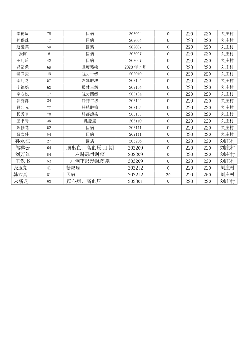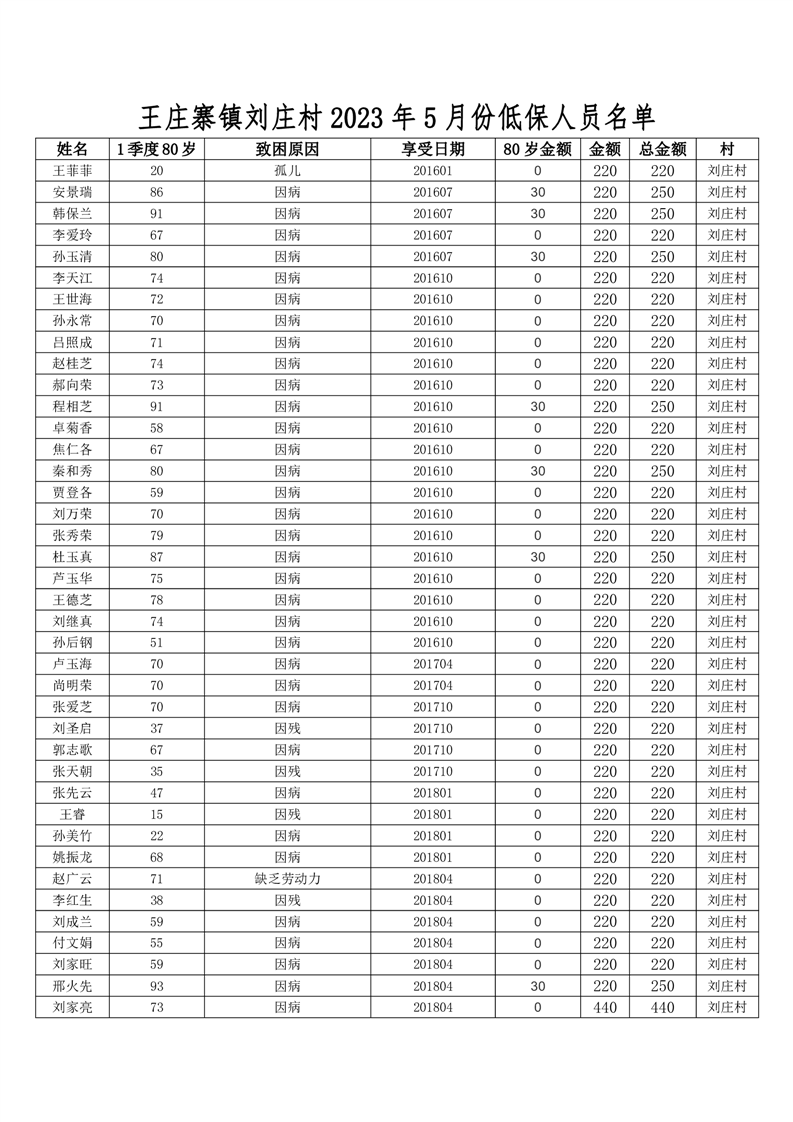 王庄寨镇刘庄村2023年5月份低保人员名单