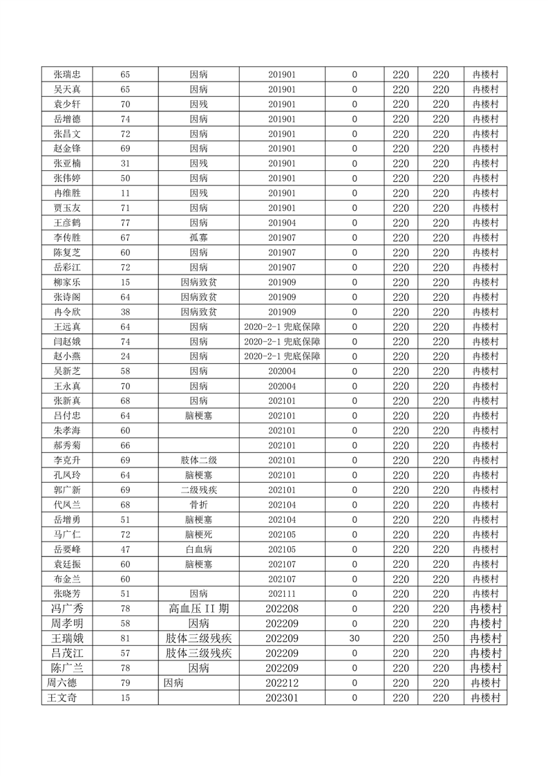 王庄寨镇冉楼村2023年5月份低保人员名单