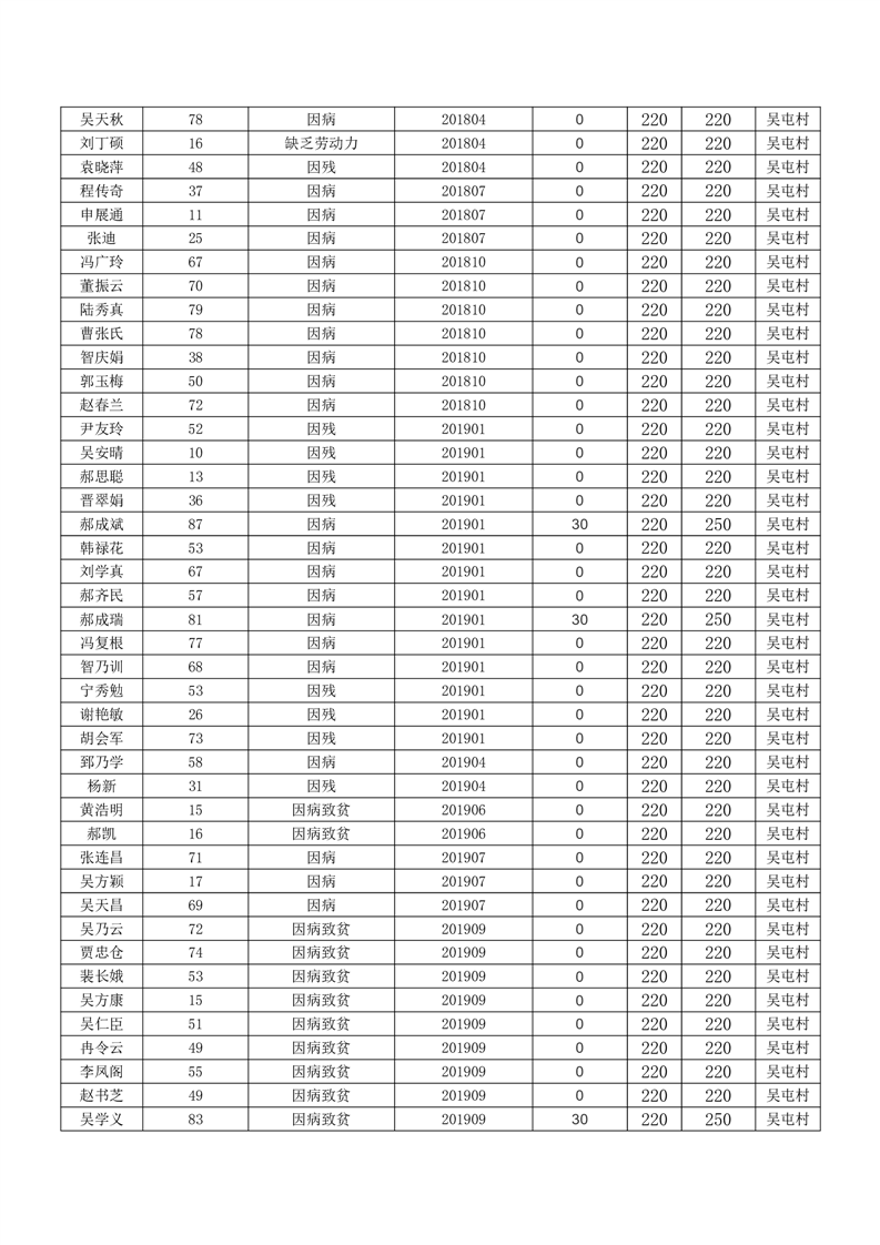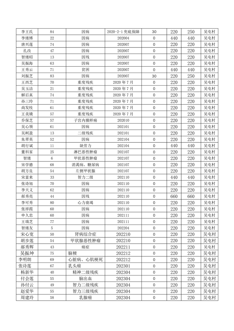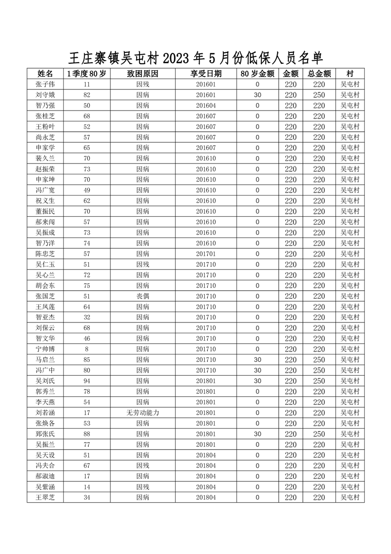 王庄寨镇吴屯村2023年5月份低保人员名单