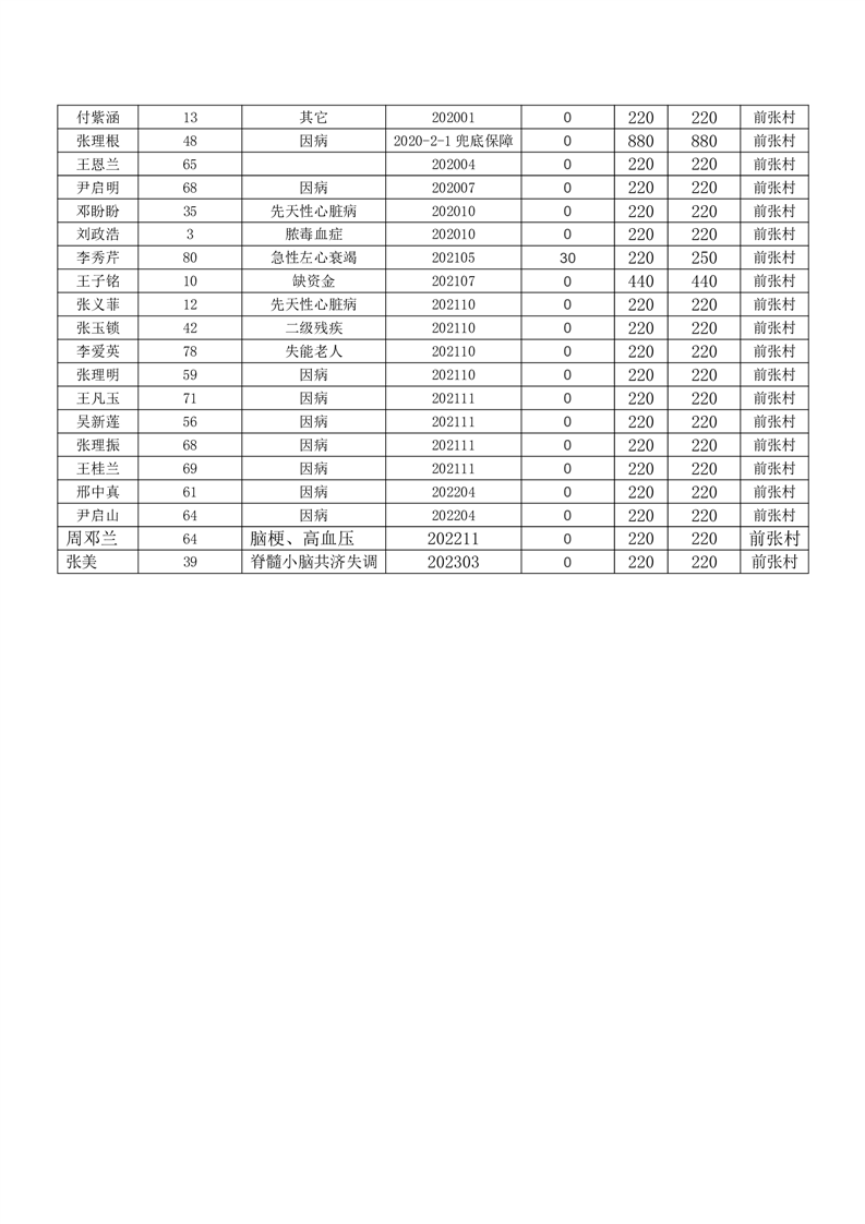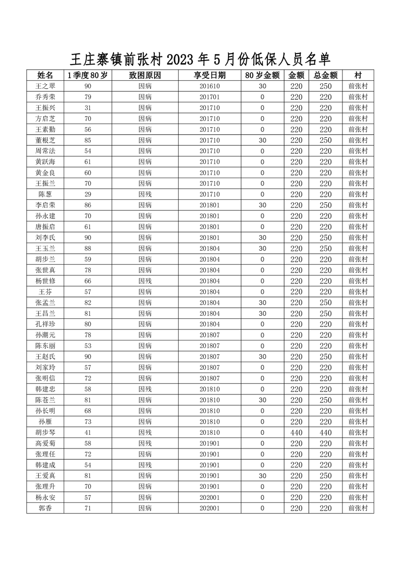 王庄寨镇前张村2023年5月份低保人员名单